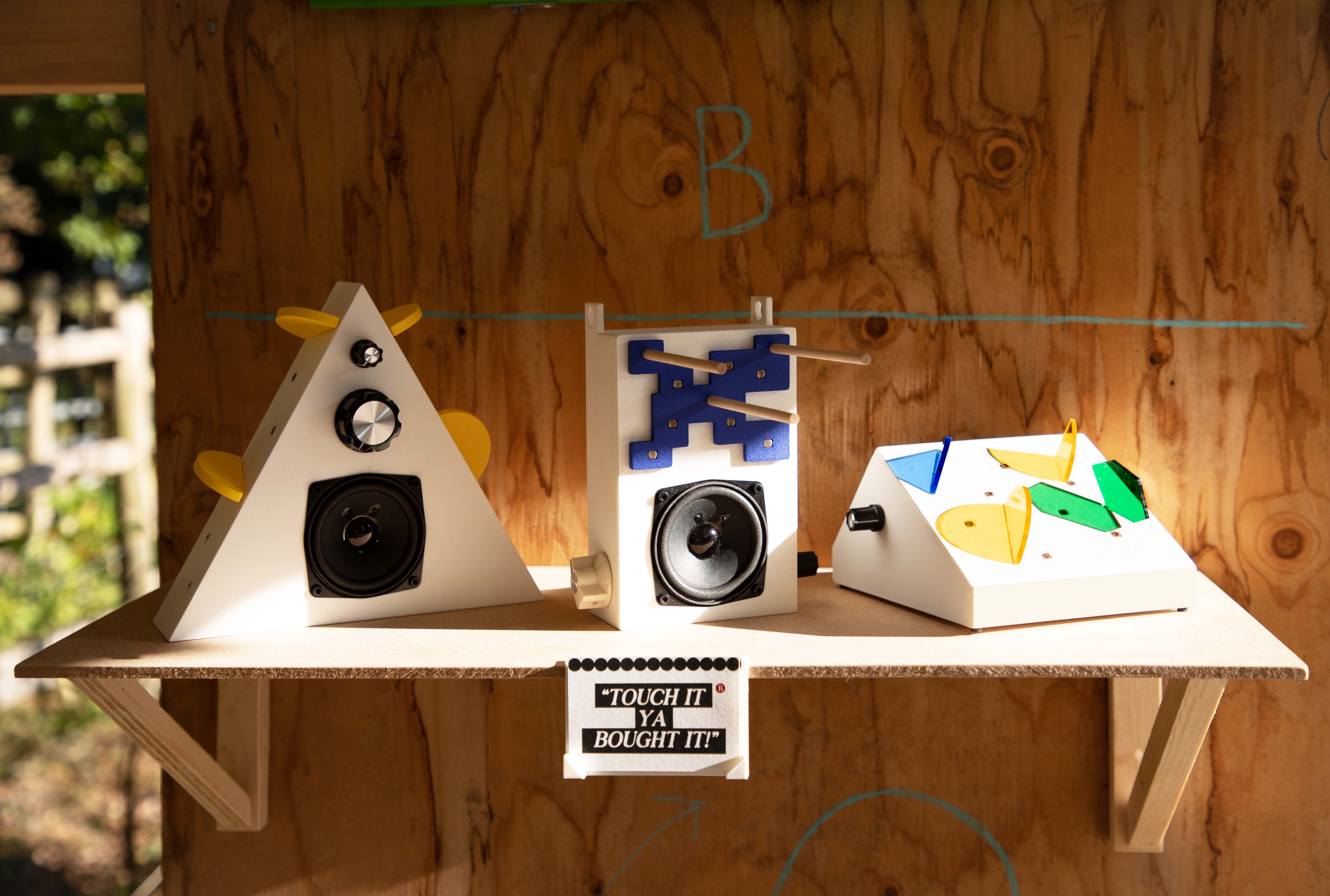 When shadows fall on the sensors, they trigger sound frequencies. Each device includes both audio outputs and built-in speakers, allowing users to connect headphones or integrate the instruments into mixers and audio interfaces for further sound processing.